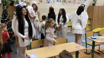 Pátého prosince značí čertovský rej. Deváťáky tento den vystřídali ve škole čerti a andílci. Ti se šli podívat za dětmi na první stupeň a zkontrolovat, jak byly hodné a jak umí hezky zpívat. Některé děti skončily v pytli, ale čerti je hned vrátili zpátky. Mikuláš všechny pochválil, andílci poletovali s bonbóny a všichni společně se už těšíme na zasněžené Vánoce.